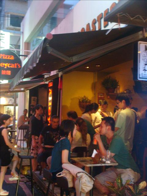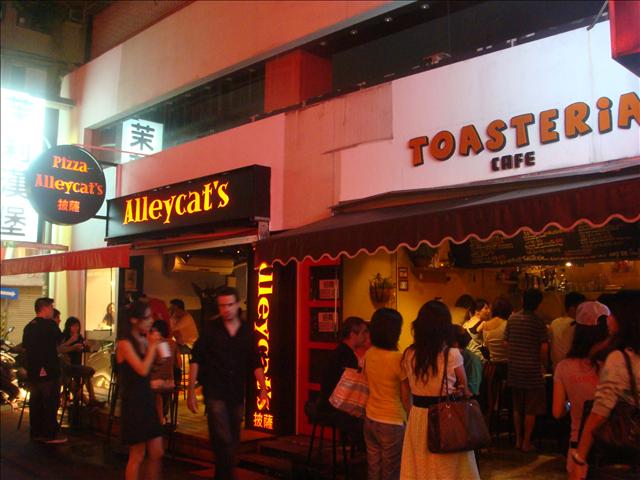 右手邊接連3家半露天的小店(TOASTERiA Cafe, Alleycat's Pizza & 茉莉漢堡) 連成一氣