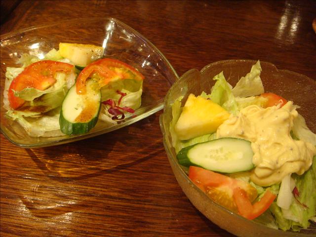 生菜沙拉可選擇用和風醬 or 西式醬搭配, 但好像是第一次看到次沙拉裡面有放片鳳梨呢