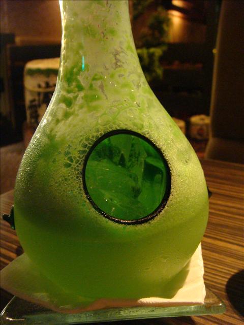 點了壺用清酒、柳橙汁、可爾必斯、藍柑橘酒調製而成的 "霓裳"($380)