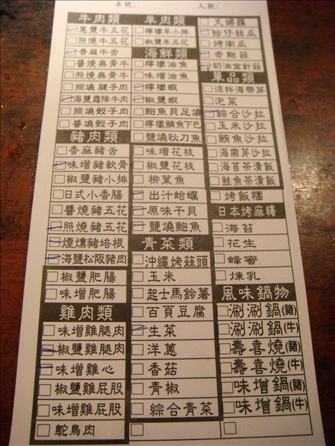 第一輪會由店家主動送上各式肉類 & 海鮮盤, 之後再填寫點菜單加點自己喜歡的食材