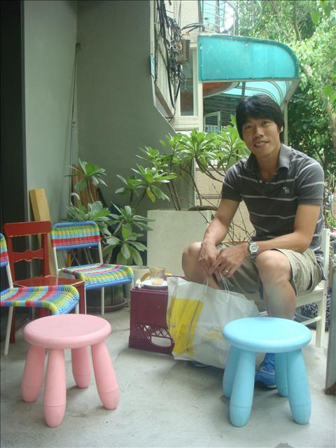 離開前, 特別去試坐陽台上那幾張可愛的兒童座椅, 挺好坐的說
