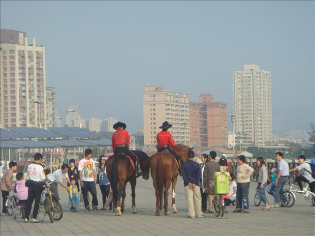騎在駿馬上那英姿煥發的模樣, Umm, 有帥到啦!! 他們的魅力從陸續靠過去的人群可見一般