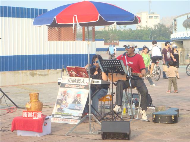 週末午後, 街頭藝人的表演讓整個環境氛圍更顯悠閒