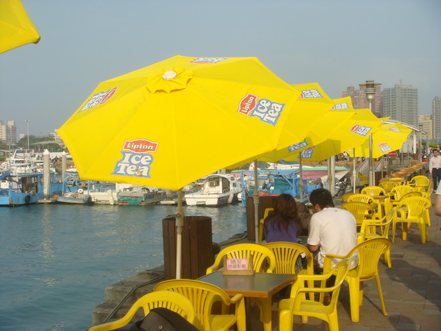途中最吸引我目光的不是各式小吃、熱食, 而是由立頓贊助, 鮮黃亮眼的洋傘咖啡座