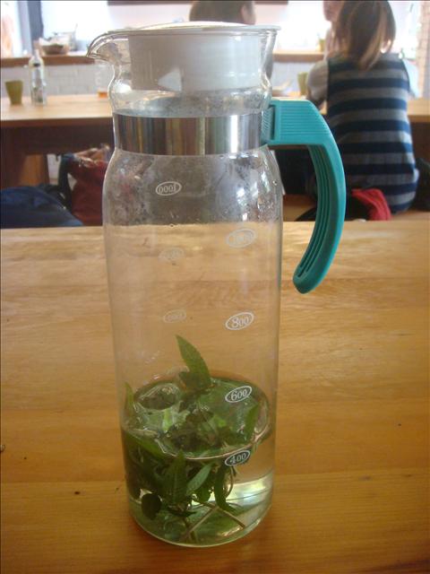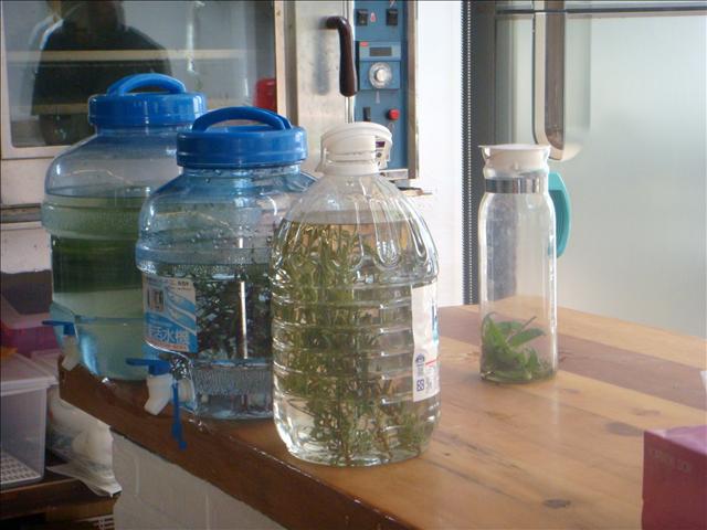 茶水部分有三大壺, 分別是需要和香草一起加熱煮過的檸檬香茅水、迷迭香水, 還有冷泡即可的芳香萬壽菊水