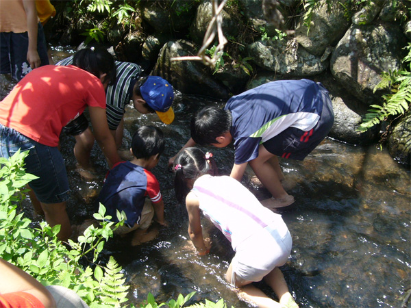 另一路則以小朋友為主, 跟著黎醫生的大女兒去玩水及摸魚、蝦