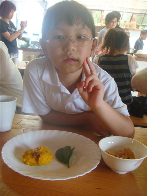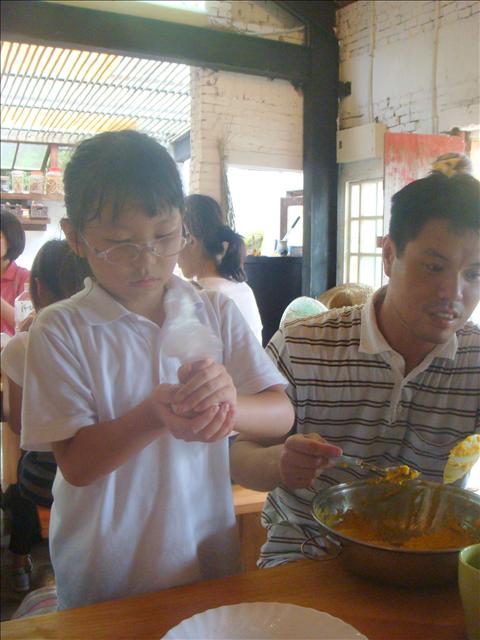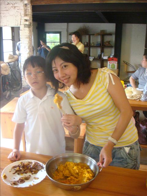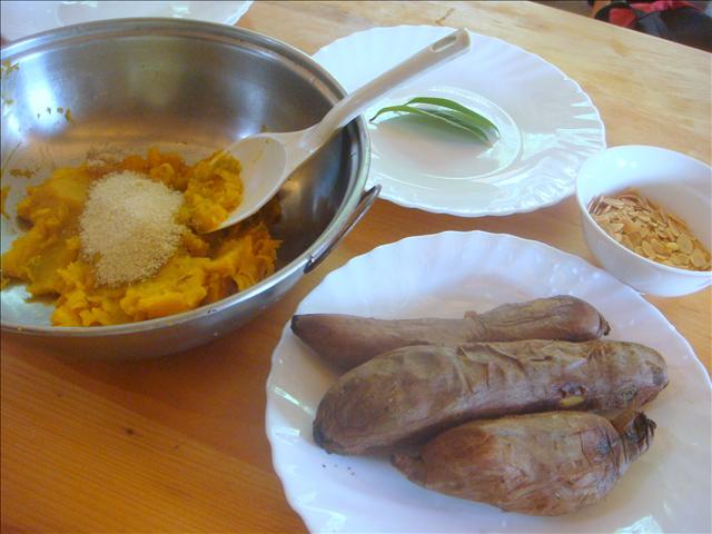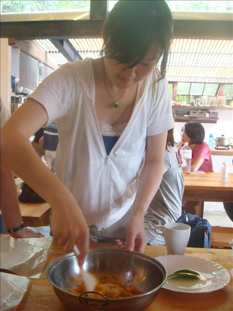 因為當天採收到的地瓜有限, 惠雯老師另準備了一些南瓜泥混搭