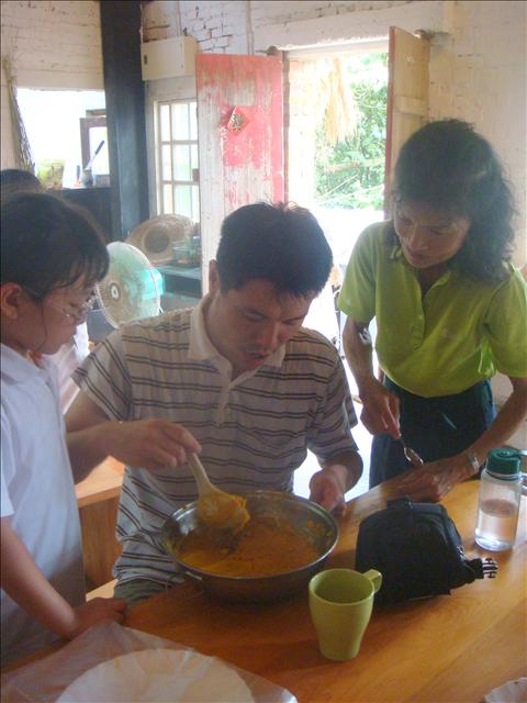 接著, 同桌成員一個一個體驗如何搗地瓜泥
