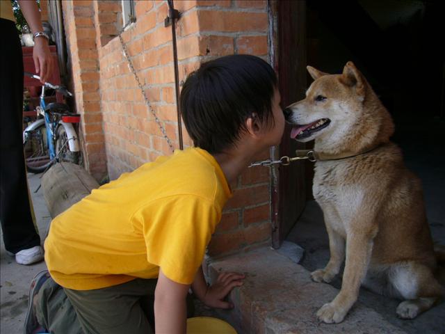 也難怪啦, 農莊中共養了3隻狗, 但以這隻守在古厝門口的柴犬多米最得小朋友喜愛