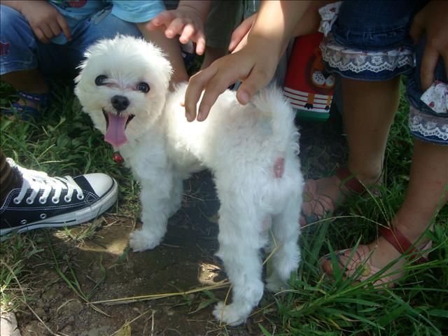 除了多米外, 小朋友們對同事帶去的一隻白色小狗也很有興趣, 像涵涵就一直繞著牠轉