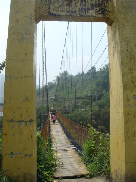 尤其走到吊橋中間,搖晃懸掛在深約100公尺的山谷上