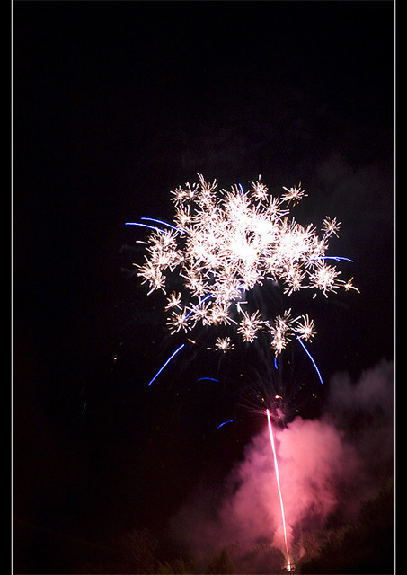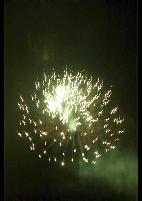 此時, 前方燃放起璀璨的煙火, 好美~