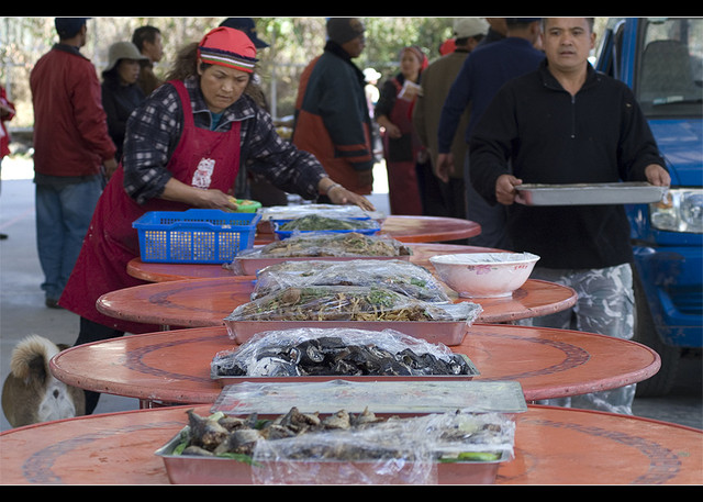 菜量足夠應付全部落的人來吃, 有些居民都還自備便當盒來包便當哩