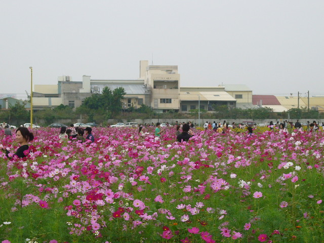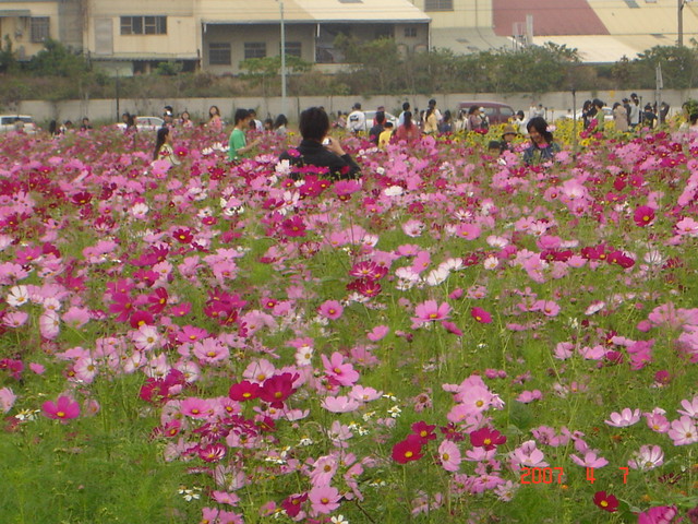是個栽種了波斯菊、向日葵、萬壽菊....的大片花田