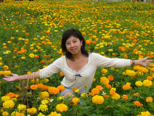 擁抱這片黃橙交錯的萬壽菊花田
