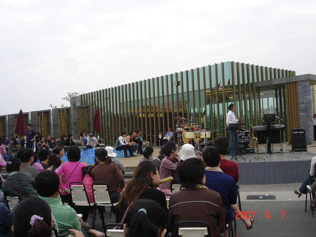 在樣品屋前搭了一個用來舉辦假日音樂會的舞台