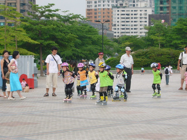 索性坐在廣場歇歇腳,看看可愛的小朋友溜直排輪吧