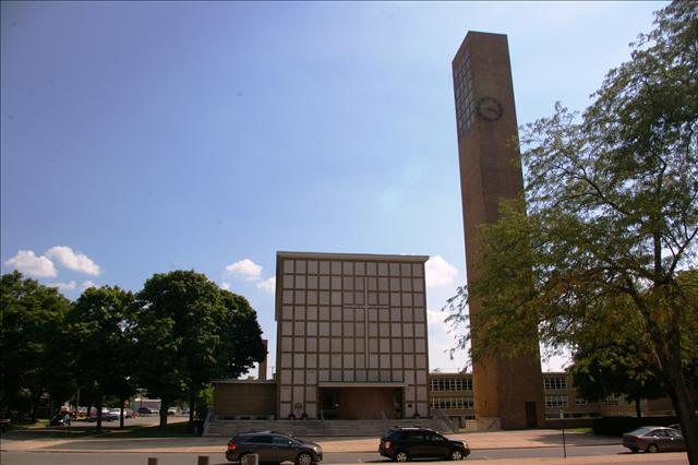 位於圖書館正對面的"First Christian Church" by Eliel Saarinen, 建於1942, 是Columbus 第一座當代建築