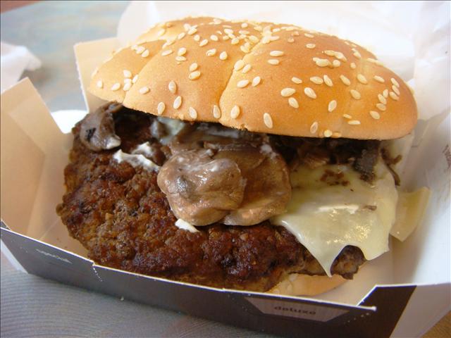 Chris’媽點了Deluxe口味, 我的是Mushroom & Swiss, size 比一般的漢堡大多了