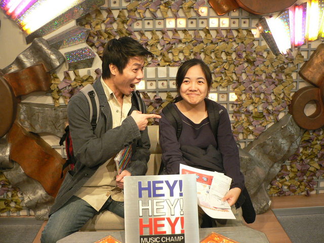 我跟張氏姐妹還在知名節目布景上假裝是上節目的主持人或來賓