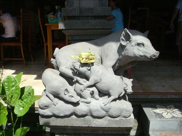 門口的石雕是豬造型