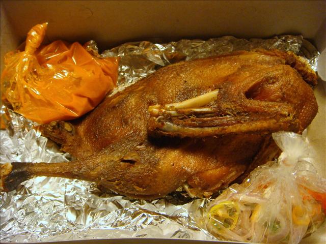 但外帶顯然單薄許多, 半隻鴨 + 一包類似泡菜的開胃小菜 + 一包醬料, 就這樣...