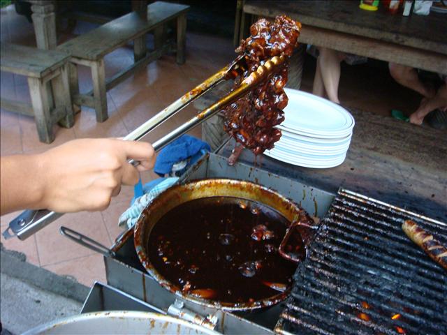聽說Ibu Oka 的烤乳豬, 是先將肚子內部塞滿藥草和香料, 再放到炭火上燒烤而成