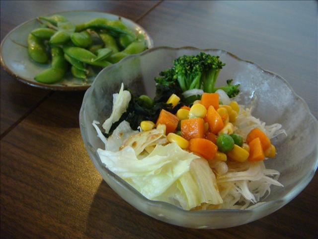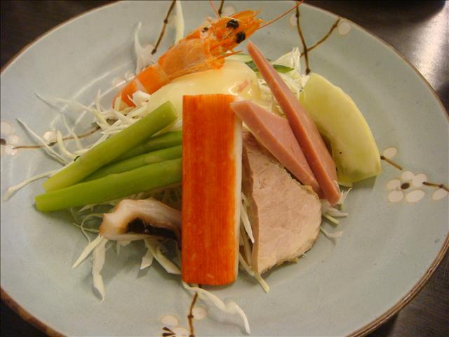 "和風沙拉"中有切成細絲的高麗菜, 淋上和風醬後頗有一番風味