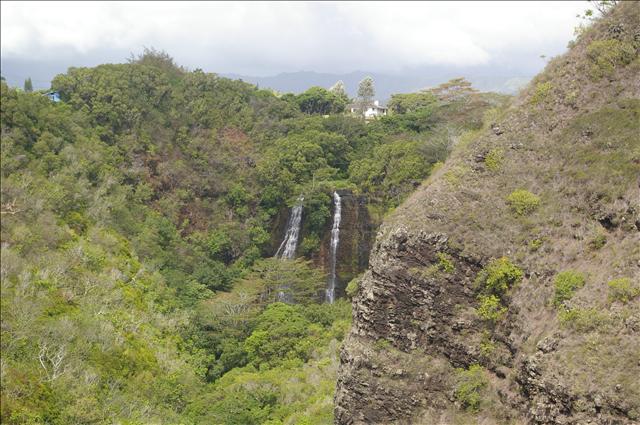 可以遠望那有如兩條白絹般的Opeaka'a Falls