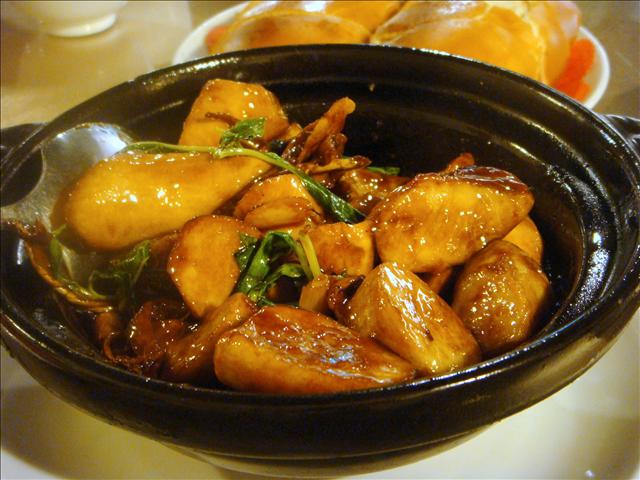 裝在砂鍋中的"三杯杏鮑菇" (260), 想當然爾走重口味路線