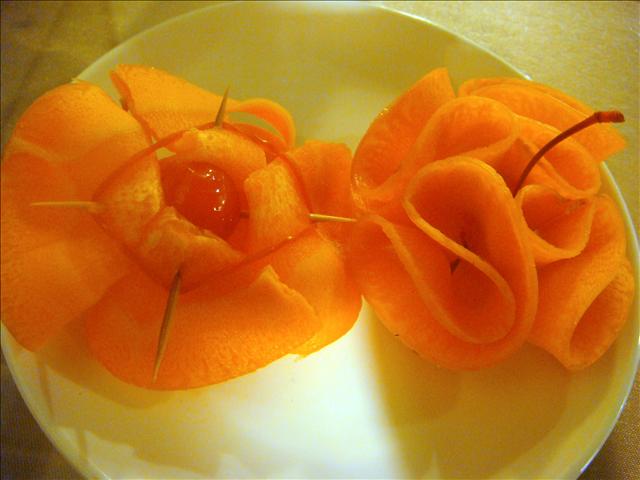 正面看起來就是朵用紅蘿蔔紮成的花, 且花心伸出了條櫻桃蒂