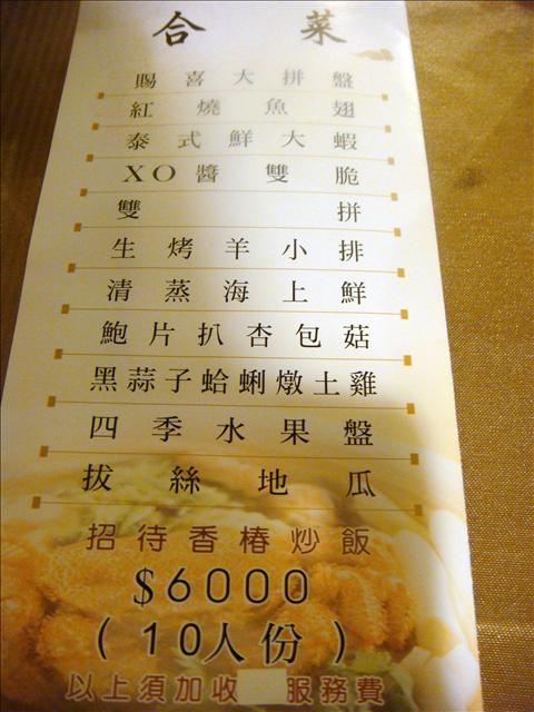 此外, 我們對一桌3,000 6,000 的合菜還頗感興趣, 看起來很豐盛