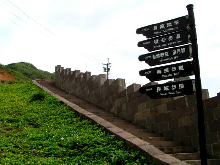 因為圍牆隨地勢坡度而呈梯狀,又稱為"長城步道"