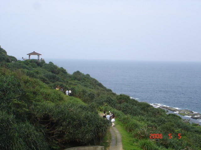 一會兒就來到可以俯望鼻頭角海岸的海蝕平台及海階地形及遠望龍洞岬及三貂角的"海天亭"
