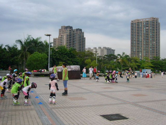 索性坐在廣場歇歇腳,看看可愛的小朋友溜直排輪吧